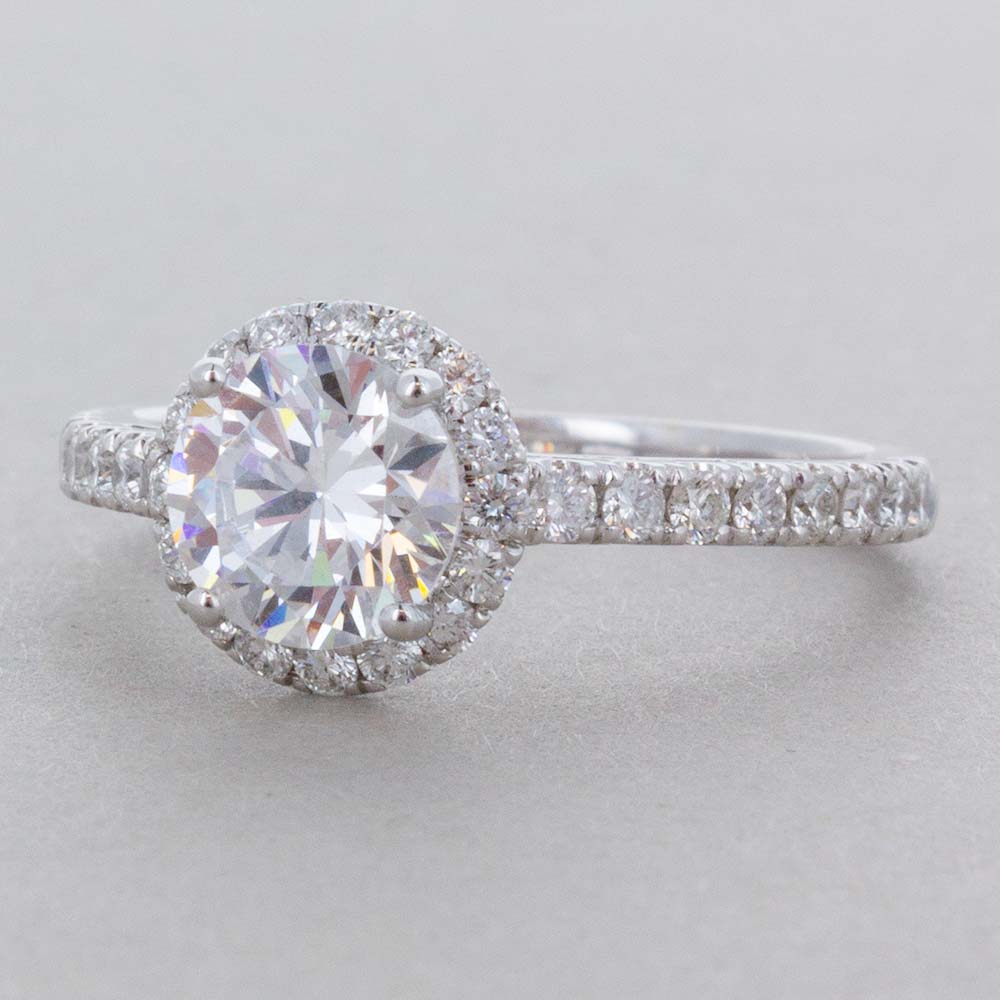 This ring is finger size 6.5 and fits a 1 carat round center (shown with cz center)