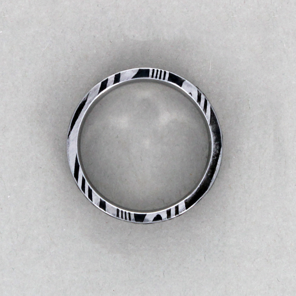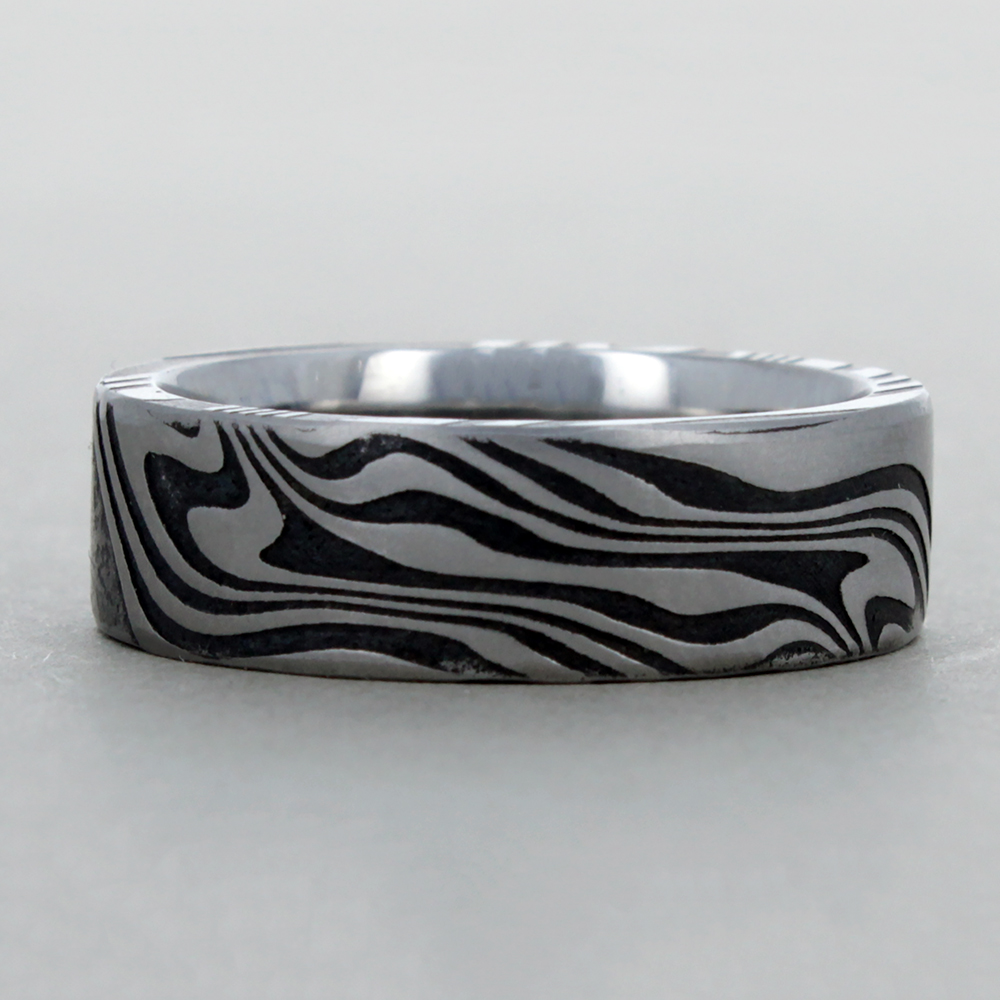 Damascus Steel rings are made by folding or twisting together 2 different kinds of stainless steel. The process was created to add strength to Stainless Steel metal applications. In your ring it provides that strength along with the imaginative patterning created by the master Chris Ploof. Every ring he makes is a one-of-a-kind custom creation, beautiful and instantly recognizable. Of equal importance to Chris is how his rings feel to the wearer. He developed one of the most comfortable ‘comfort’ fits in the industry. They feel as good as they look. Each Chris Ploof ring is custom made for you and although your ring will look similar to our sample no two of his rings are identical. Damascus rings are available in flat or rounded profiles.