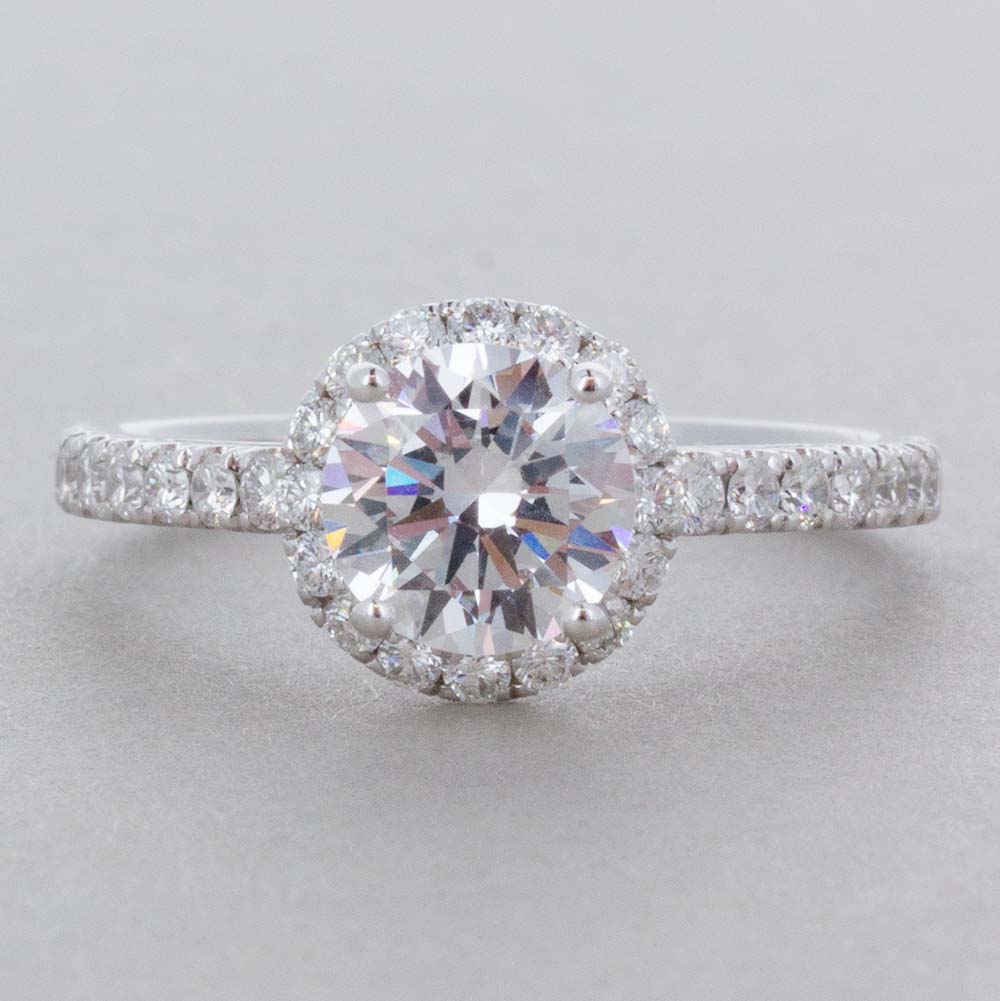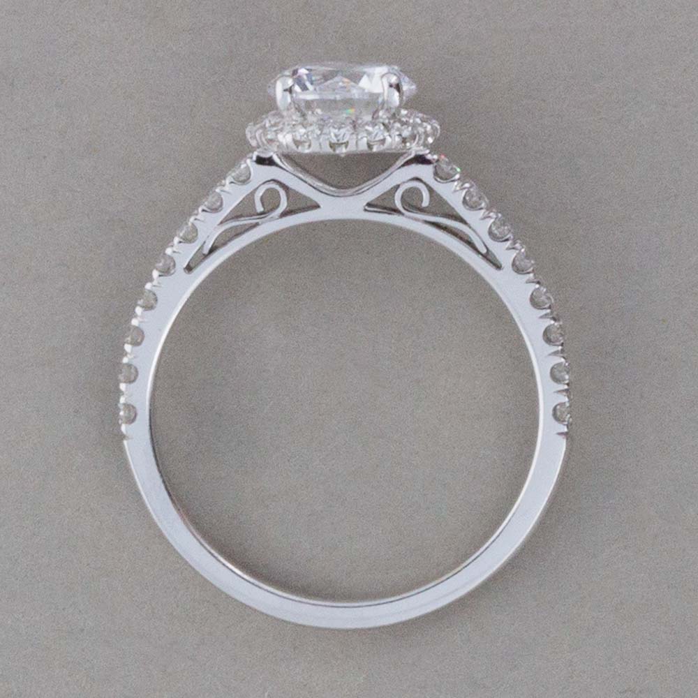 This ring is finger size 6.5 and fits a 1 carat round center (shown with cz center)