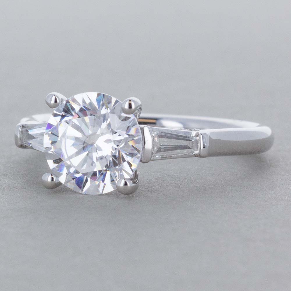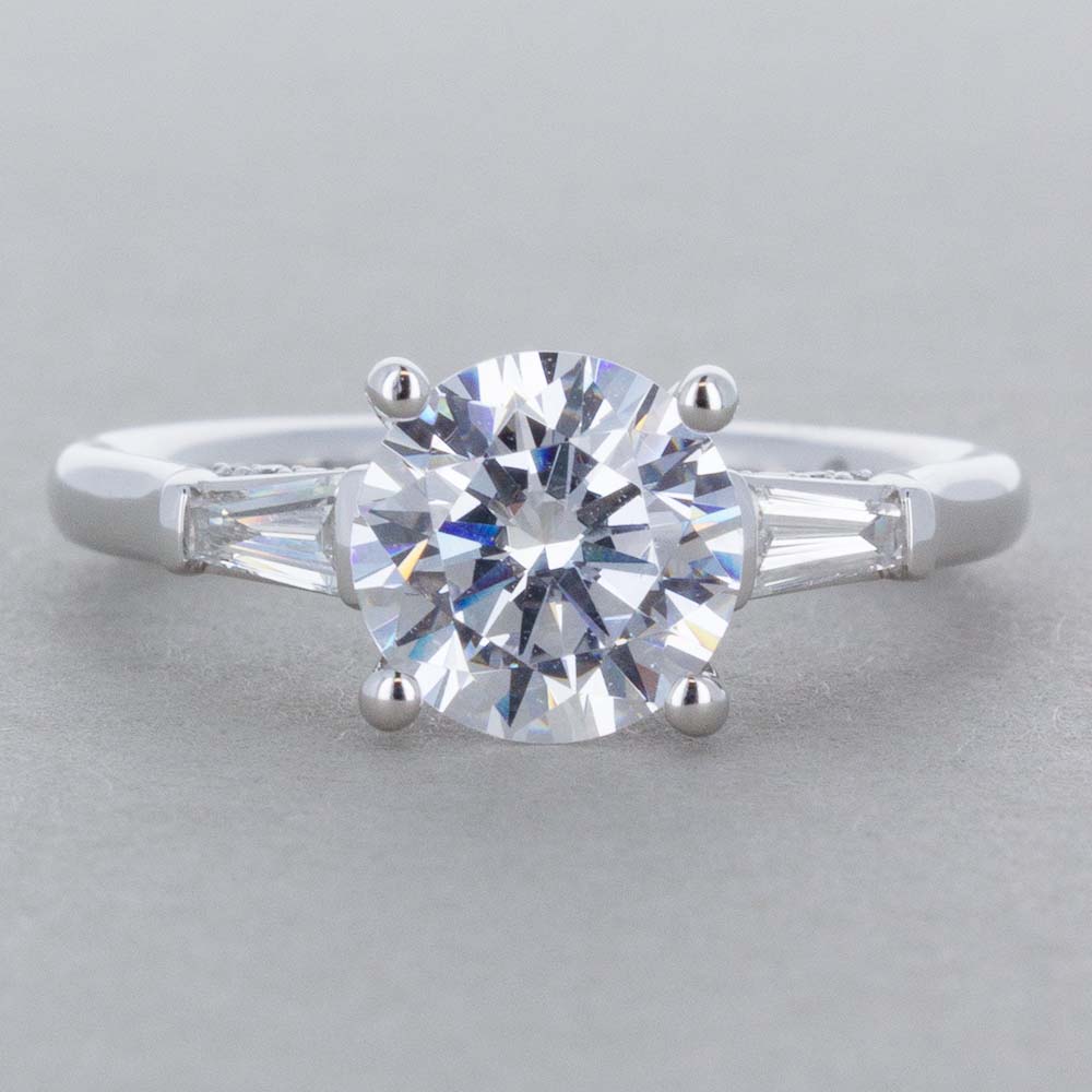 - Our stock ring is a finger size 6.5 and fits a 1.5 carat round center (shown here)